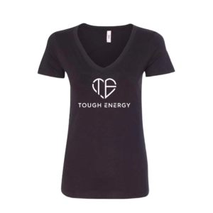 Tough Energy Women’s V-Neck T-Shirt – Black/White