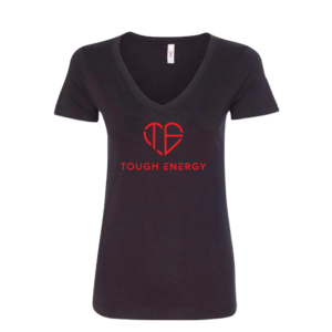 Tough Energy Women’s V-Neck T-Shirt – Black/Red